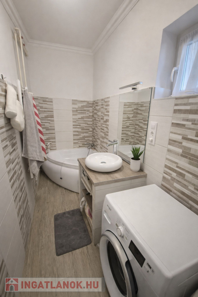 Az ingatlan belső felújítását követően , gondos tulajai modern stílussal lakták be , így alakult ki a 1,5 szoba, nappali fürdő , konyha-étkező és kamra helyiségei.