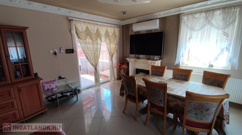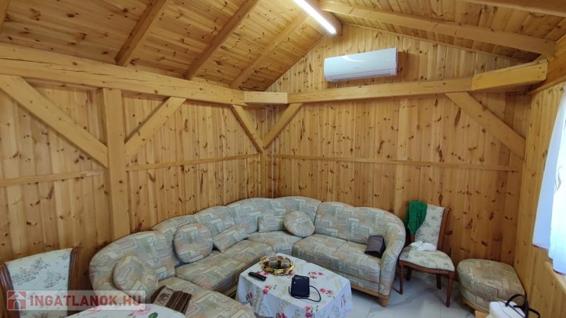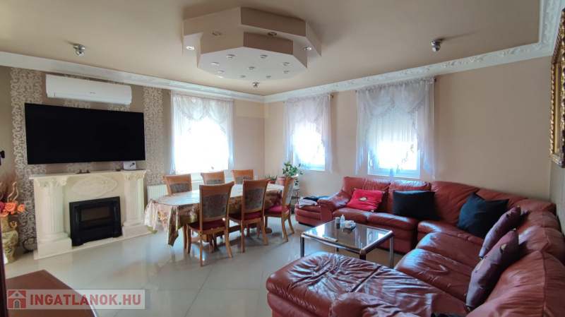 Hűtő fűtő klíma nappaliban, illetve egy látvány kandalló is besegít a ház hómérsékletébe.