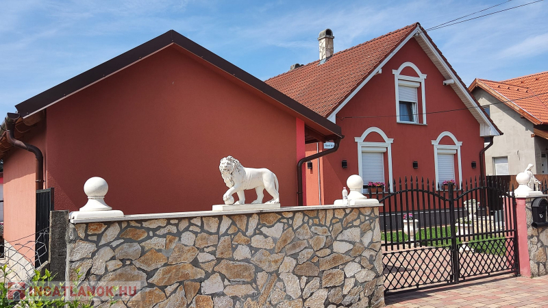 Körbe kerítve, beparkosítva, kocsi beállóval, elektromos kovácsoltvas kert kapu bebocsájtással.