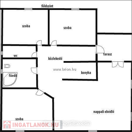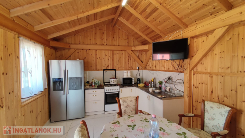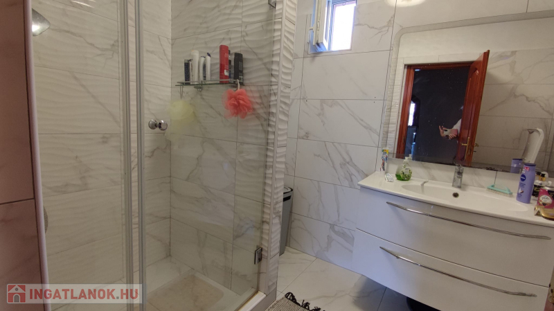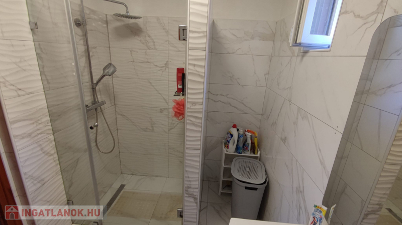 A földszinten 2 szoba , közlekedő, fürdő szoba melyben épített zuhany kabin lett kialakítva, konyha , kamra .
