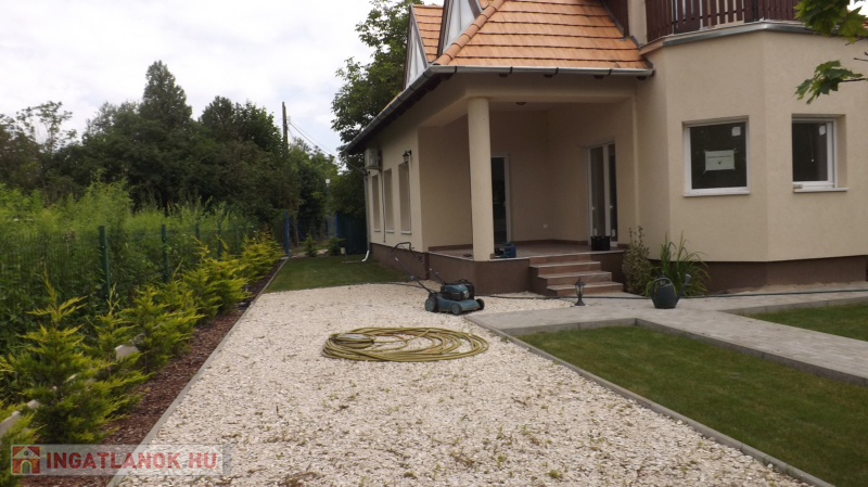 Ráckevén, 100m-re a Kis-Dunától, csendes zsákutcában, hangulatos,134 nm-es ,tégla építésű, két szintes , tulajdoni lap szerint üdülő besorolású nyaraló eladó.Az ingatlan Somlyószigeten, aszfaltos út mellett található.Az ingatlant 2002-ben kezdték el építeni téglából, cserépfedéssel.A földszint 78 nm, plusz 7 nm terasz, a felsőszint 56 nm (45 nm)A földszinten egy tágasabb előtérbe lépünk be, melynek jobb oldalán található a lépcsőház, balra pedig a lenti hálószoba nyílik. Az előtérből tovább haladva a hatalmas nappaliba jutunk, melynek két végében egy-egy félkör alakú kiszögellés található, melyből az egyik a konyha, a másik akár télikertnek is megfelel. A nappaliból nyílik még egy földszinti tusolós fürdőszoba is.Az emeleten egy előtérből nyílik 3 szoba, melyek közül kettő erkélyre nyílik. Fenn található megy egy fürdőszoba is, melybe fürdőkádat állítottak be.A telken vezetékes víz, csatorna, és villany található.A fűtést elektromos kazán szolgáltatja, valamint inverteres légkondicionáló berendezések segítenek a téli-nyári kellemes hőmérséklet biztosításában.Az ingatlan üdülőövezetben található, tehát nem CSOK-kompatibilis.Az ingatlan önálló telken helyezkedik el, teljesen körbekerített, a kert parkosítva van.ÁLLANDÓ LAKHATÁSRA IDEÁLIS VÁLASZTÁS.Az ingatlan megtekintése irodánkkal előre egyeztetett időpontban történik. Szívesen állunk rendelkezésre!