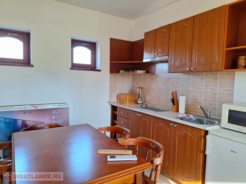 1.ház: 70 nm, 1 szoba, konyha, fürdőszoba és egy autó beállásos garázs, automata garázskapuval felszerelt.