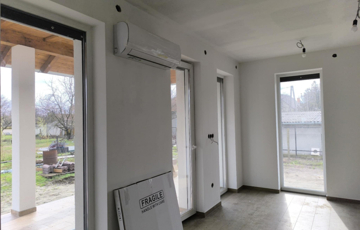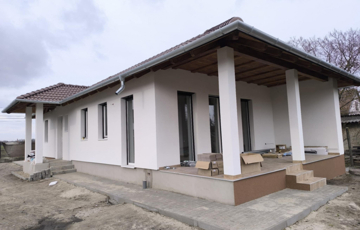 ALBERTIRSA – ÚJ ÉPÍTÉSŰ ÖNÁLLÓ CSALÁDI HÁZ ELADÓ! 723 m²-es telken épülő, 74,4 m²-es modern családi ház, 15,5 m²-es terasszal. Minőségi alapok: vasbeton sávalap, Porotherm falazat, fafödém cellulóz szigeteléssel, Terrán tető, hőszigetelt homlokzat. Nyílászárók: fehér műanyag külső, fa belső.Helyiségek: amerikai konyhás nappali teraszkapcsolattal, 2 háló, fürdő, külön WC, közlekedő. Az ár tartalmazza:- Burkolatok: laminált padló 5.000 Ft/m², járólap/csempe 7.000 Ft/m²- Fehér festés- 2,8 kW napelem- Padlófűtés + kondenzációs kazán- 3,5 kW klíma Törölközőszárítós radiátor- 1×32 A elektromos hálózat- Redőny előkészítés- 2 WC, szaniterek 250.000 Ft-ig, épített zuhany- Viacolor járda kaputól a házig és teraszig. Egyedi igények teljesítése, megtekinthető referenciákkal. A képek az előző munka folyamatáról készültek! Az építkezés foglalózás után kezdődik, kivitelezés 6-8 hónap. Nyugati – 48 perc Budapest: 50 km, Ferihegy repülőtér: 35 km (M4 autópályán) Ne maradjon le erről a lehetőségről! Hívjon bátran hétvégén is: Alitisz Judit  0620 4004009  Nézze meg a képeket – és ha el tudja képzelni itt új otthonát, hívjon bizalommal!